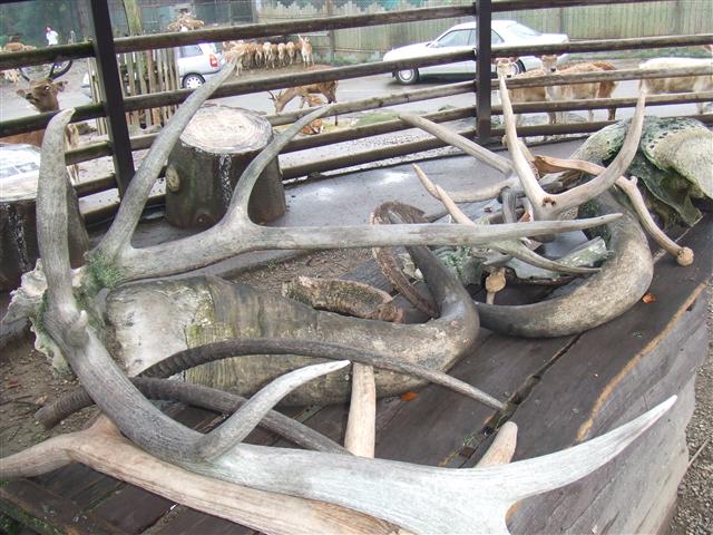 鹿の頭蓋骨と、もぎ取られた角たちを・・・
